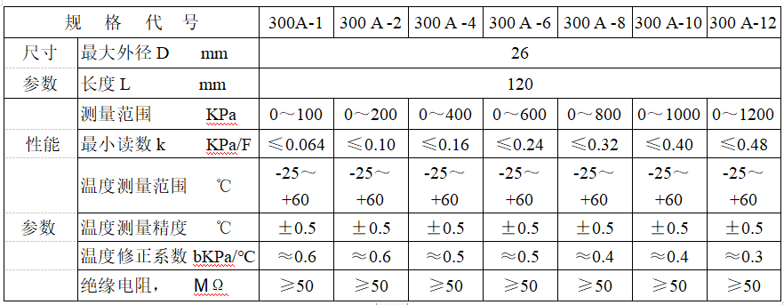 ?1 ?300型滲壓計(jì)嚴(yán)格要求在額定測量范圍內(nèi)工作,引出電纜可接長至1000m。